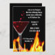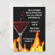 Un sanglant martini verre, posé sur un arrière - plan noir, avec des flammes met en valeur cette invitation de fête à la Goth. Le texte personnalisé blanc est prêt à être personnalisé pour votre fête d'Halloween.