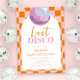 Cette invitation à la fête de bachelorette présente une esthétique d'inspiration rétro avec une touche ludique et un motif à damiers dynamique en alternant des carrés orange et rose et des détails dorés. Photo Mockup par freepik.