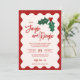 Faites entrer l'esprit des fêtes avec notre invitation festive pour une soirée Red Jingle et Mingle de Noël. Cette invitation offre une touche contemporaine au charme classique des fêtes, avec un cadre à festons dans un rouge de fête vibrant qui donne à votre célébration une touche festive. L'écriture ludique ajoute une touche de plaisir, assurant que votre rassemblement de Noël commence sur une note mémorable dès que vos invités reçoivent leurs invitations !