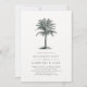 L'invitation de soirée de fiançailles de style plage vintage présente une illustration de palmier gravé en vert chasseur noirci, surmontant vos détails de mariage en gris charbon pour un look côtier chic. Les cartes d'invitation ivoire blanc cassé se retournent sur un motif tissé à la manière d'un toit de chaume. Nous recommandons d'imprimer ce style sur le papier Traditionnel Laid pour une texture riche qui complète le look vintage de cette invitation de soirée de fiançailles.
