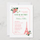 Cette invitation élégante et délicate est idéale pour célébrer un événement de bon goût. Il présente un dessin de la Tour Eiffel avec des roses vintages aux coins. Une fine bordure apporte une touche design. Ce design est parfait pour une mariée chic qui aime voyager et la France. Ajoutez les détails de votre propre fête.