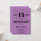 Invitation 15e anniversaire Typographie noir et violet. Arrière - plan noir et violet. Anniversaire enfant. Hommes ou Femmes Anniversaire. Enfants Garçon ou fille Ado Anniversaire adolescent Invitation . 13ème 15ème 16ème 18ème 20ème 21ème 30ème 40ème 50ème 60ème 70ème 80ème 90ème 100ème. N'Importe Quel Âge. Pour plus de personnalisation, cliquez sur le bouton "Customiser" et utilisez notre outil de conception pour modifier ce modèle.