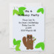 Beaucoup de plantes verts et un castor de dessin animé avec de grandes dents et une charge de brindilles et de branches dans ses pattes accentuent cette invitation d'anniversaire. Customisez avec toutes les informations souhaitées.