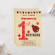 Invitation d'anniversaire avec le thème de la coccinelle et la combinaison de couleurs noir et rouge.
