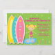 Commencez votre fête avec cet adorable invitation à thème de plage. Il est installé sur un arrière - plan vert avec des pois verts plus clairs. Il y a 3 planches de surf sur le côté gauche de cette invitation. Un jaune, turquoise, et rose avec les mots "soleil & plaisir". Il y a cette mignonne fille aux cheveux blonds dans une flaque d'eau. Le coin inférieur droit a le mot "surfer girl" en lettres pastel. Découvrez nos nombreux autres produits et designs dans cette ligne. ©lillybimble
