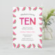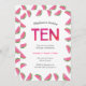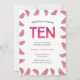 Faites une fête tropicale et sucrée pour votre petit 10e anniversaire ! Cette adorable invitation à l'anniversaire présente une pastèque rose qui est moderne et tendance. Tous les détails, y compris (sauf l'âge), sont personnalisables. (D'autres âges sont aussi disponibles ci-dessous dans cette collection !) © Mini Moi Prints