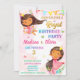 Rejoignez-nous pour une fête d'anniversaire royale ! Invitation d'anniversaire de princesse magique Aquarelle invitation royale Invitation magique Invitation d'anniversaire magique. Invitation tes amis avec cette invitation à thème magique de l'aquarelle mignonne! Cette invitation à la princesse présente deux jolies petites princesses en robe rose, des guirlandes colorées au sommet, des fleurs et des arcs-en-ciel autour. Modifiez simplement ce modèle facile à utiliser dans le menu Personnaliser pour le rendre spécial.