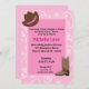 Pink Birthday Invitations pour cowgirls avec un casquette cowboy à bande rose et une botte. L'Arrière - plan est bandanna rose. Thème occidental pour les filles seulement.
