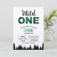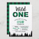 Un sauvage ! Cette invitation à plaid imprimé avant et arrière est parfaite pour une fête de premier anniversaire. Comprend la silhouette du motif et de l'arbre à buffle vert et noir. Idéal pour une fête à l'automne ou en hiver, une bûcheron, une aventure ou un thème extérieur ou un panier-repas.
