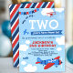 Customisez cette invitation avec n'importe quel âge ! Mon Dieu, comment les années passent ! Célébrez l'anniversaire de votre petit garçon ou de votre petite fille en haut et en loin avec une invitation d'anniversaire d'avion rouge, blanc et bleu.