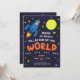 Célébrez l'anniversaire de votre petit en beauté avec cette invitation à l'anniversaire thématique espace ! Avec un vaisseau fusée entouré d'étoiles et de lune, il est facile de customiser les détails avec des informations pour la fête de votre astronaute. Ajoutez la photo de votre petit à l'arrière d'une combinaison spatiale pour une véritable invitation hors du monde !