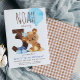 Cet invitation de fête d'anniversaire a un ours en peluche avec un casquette bleu. Le dos de l'invitation a un motif en vichy marron; parfait pour le thème animal de forêt boisée de garçon 3e anniversaire fête. Personnalisez l'invitation avec vos détails et vous avez les options pour acheter des invitations imprimées ou un téléchargement numérique.