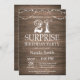Invitation Rustic Surprise 21e anniversaire avec Arrière - plan Rustic Wood. Lumières à cordes. Country Vintage Retro. Anniversaire adulte. Hommes ou femmes, anniversaire.
