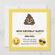 Amusante invitation d'anniversaire émoji, avec un poop emoji comme principal émoji.