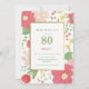 L'invitation élégante et classe à célébrer le 80e anniversaire peut être customisée pour votre occasion spéciale. Il présente une bordure fleurie ainsi qu'un cadre doré et des accents dorés. La couleur et le texte arrière - plans peuvent être changés à votre goût. Un invitation idéal pour un anniversaire d'étape pour adulte.