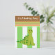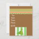 Un dinosaure mignon avec un corps vert, des taches vert foncé et une queue d'araignée. Un arrière - plan de rayures vertes et blanches derrière lui. Une bordure de brun avec des rayures amusantes dans les verts et les couleurs orange l'accentuent. Customisez avec toutes les informations de votre parti selon vos besoins.