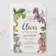 Invitation d'anniversaire du dragon moderne. Baguettes d'aquarelle douces.