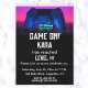 Cette invitation modifiable présente une photo d'un contrôleur contre un arrière - plan néon avec les détails de la fête d'anniversaire ci-dessous. Les détails sont modifiables, allez-y et changez les informations ainsi que le style, la taille et la couleur de la police. Au verso se trouve un champ modifiable pour plus d'informations. Crédit photo : Brian J. Tromp, 2022. Profitez de votre nouvelle invitation d'anniversaire de Joueur Editable !
