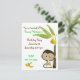 Jolie et colorée invitation à la fête d'anniversaire des enfants, faite dans un style de dessin animé, avec un point de polka blanc arrière - plan de vert pâle, tan et marron. Un mignon singe caricaturiste mangeant une banane assise sous un palmier donne à l'invitation de ce gamin un aspect amusant et passionnant. Customisez tous les champs de texte selon vos besoins, avec le style de texte, la couleur et la taille.