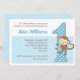 Joli singe 1er anniversaire invitation pour les garçons, avec un singe accroché au numéro un.