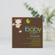 Commencez votre baby shower de safari dès maintenant avec notre invitation au baby shower des singes de la jungle. Notre invitation à la douche de singe présente le plus doux petit singe avec une cravate arc balançant sur une branche d'arbre sur un arrière - plan brun branché avec un singe qui se coordonne en arrière. Visitez notre boutique pour voir nos cartes de remerciement, cartes postales et autocollants correspondants. ©Petit Tatti