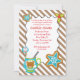 Des biscuits, quelqu'un ? Rien ne dit mieux les fêtes que l'échange de biscuits à l'ancienne ! Invitez votre famille et vos amis à venir déguster des pâtisseries avec cette adorable invitation à un échange de biscuits. Elle est posée sur un fond rayé en diagonale marron clair et blanc. Il y a une étiquette blanche incurvée au centre. Dans le coin inférieur gauche, il y a une tasse bleue avec un mug vert de chocolat chaud avec un visage d'ours en peluche sur le devant. Il y a des marshmallows et une paille rayée qui en sortent. Il y a un biscuit en forme d'étoile glacé de bleu à côté. Utilisez le verso de cette invitation mignonne pour expliquer comment fonctionne un échange de biscuits. Découvrez nos nombreux autres modèles.