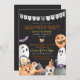 Halloween Trick ou Treat Invitation. Une collection d'Halloween super amusante créée avec ballons, bonbons, fantômes, chauve-souris, sorcière casquette et crâne. Parfait pour une fête d'Halloween, Cocktail Party, Spooktacular Dinner Party,