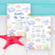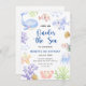 SOUS LA MER. Oneder The Sea - Une mignonne invitation à l'anniversaire d'un animal sous-marin sur le thème de l'eau de mer animaux - baleines, méduses, poissons clowns, étoiles de mer, crabes, requins et coraux. Bulles d'eau et coquillages.