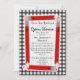 Une invitation avec un arrière - plan gris en vichy devant et derrière. L'avant présente des crayons rouges disposés en rectangle avec un centre blanc. Personnalisez avec le nom de l'enseignant, le grade, l'emplacement et la date de l'orientation de l'école à domicile.