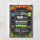 Invitation luau amusante et colorée, avec un arrière - plan en planche et en bois, des tongs, des chemises hawaïennes, des lampions en papier, des fleurs d'hibiscus, un masque de tiki et une boisson de coco. Idéal pour un anniversaire de luau et pour un 40e anniversaire (ou un autre jalon) !