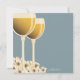 De magnifiques verres de vin blanc dessinés à la main constituent un design parfait pour un wedding shower en couple sur le thème du vin. Quand le couple aime le vin, ou si la douche ou le mariage est dans un vignoble ou un vignoble, ce design élégant vous préparera la scène de votre merveilleux événement. Les verres à vin brillent d'un variétal doré croustillant et les fleurs fleuries sont teintées d'une teinte jaune tendre, le tout sur un arrière - plan de bleu acier calme. Offert ici sur le stock papier de base, ce design serait aussi particulièrement merveilleux sur le lin ou le feutre.