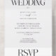 Invitation à tous à l'événement de l'année : Votre Mariage! Ce design présente d'élégantes fontes blanches modernes. Enlevez la carte postale RSVP incluse. Ajoutez un étiquette de adresse au dos de la carte ou écrivez vos adresses d'invités à la main.