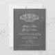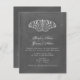 Un faire-part de mariage avec un arrière - plan inspiré des deux côtés par un tableau noir. Illustration du papillon au sommet. L'expression est celle de la mariée et du marié.