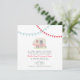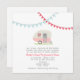 faire-part de mariage illustrant une remorque vintage rose garée dans l'herbe. La remorque possède une boîte de fenêtre remplie de fleurs colorées. Bleu et rougeâtre au sommet. Personnalisez le texte avec les détails de votre occasion. Recherchez les objets correspondants chez Jill's Paperie.