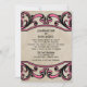 Élégante et chic Faire-part de mariage gothique avec un faux vintage arrière - plan beige texturé et bordures tourbillonnantes fleurissent en magenta. Ce design ancien est parfait pour un mariage gothique ou vintage. Facile à customiser, il suffit d'ajouter les détails de votre mariage dans les champs de texte fournis. Cliquez sur "Customiser" pour trouver d'autres options de personnalisation.
