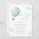 Cette charmante invitation à une baby shower présente un ballon à air chaud et des nuages mignons, ainsi qu'une typographie élégante. Avec votre code QR de liste de naissance et une photo spéciale au verso. Conçu par Thisisnotme©
