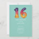 Fond sarcelle avec des ballons en mylar violet, rose et or « 16 » avec des pois arc-en-ciel et du texte blanc.