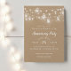Cartons d'invitation personnalisés et abordables pour une fête d'anniversaire de mariage de 25 ans avec un modèle facile à utiliser pour la personnalisation. Ce design chic rustique présente des guirlandes de lumières scintillantes et des pots Mason sur un fond de papier kraft faux. Personnalisez l'invitation avec les détails de votre fête d'anniversaire ou modifiez le texte pour l'utiliser pour n'importe quel événement. Utilisez les outils de conception pour choisir n'importe quelle couleur de fond, ajouter des photos et personnaliser les polices et les couleurs du texte pour créer un design unique pour votre fête d'anniversaire.