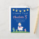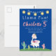 Faites la fête avec cette invitation à une fête d'anniversaire Fun Llama. Ce design présente une guirlande de lumières de fête en forme d'étoiles sur fond bleu foncé avec un cactus et un lama décoré d'une couronne et de fleurs.