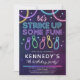 Modifiez le texte et utilisez le design pour n'importe quelle fête ou événement de bowling. Couleurs amusantes et lumineuses pour le Cosmic Bowling. Comprend des couleurs néon vives, des étoiles, des bacs de bowling et une boule de bowling au verso.