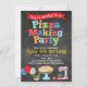 Cette invitation colorée et amusante à une fête de fabrication de pizzas sur tableau noir dans des couleurs primaires audacieuses est l'invitation parfaite pour la fête de fabrication de pizzas de votre enfant. Ce design convient parfaitement pour un anniversaire ou une fête d'équipe, ou tout événement de fabrication de pizzas.