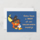 Voici une jolie invitation pour une fête d'Halloween pour enfants ! Il présente une chouette orange vif, habillée d'un casquette sorcier et perchée sur un balai devant une lune jaune croissant et une chauve-souris noire. D'un côté se trouve un minuscule fantôme blanc, et une araignée est suspendue au casquette du hibou. Le texte orange clair dit actuellement "Venez avoir un HOOT à notre HALLOWEEN PARTY", mais vous pouvez facilement le changer. L'image et le texte sont placés sur un arrière - plan de nuit bleu foncé. Le dos de la carte a une petite image d'une lanterne de jack o', et beaucoup de place pour votre texte personnalisé en blanc facile à lire. *Merci à Real Deal Clipart pour le clipart utilisé pour créer ce design.