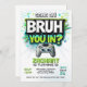 Faites de l'anniversaire de votre enfant un succès avec notre invitation de jeu vidéo BRUH Are You In ! Conçue pour les garçons et les filles qui aiment les jeux vidéo, cette invitation unique donne le ton parfait pour une célébration d'anniversaire excitante. Avec des graphismes en couleurs vives et un thème ludique « BRUH, Are You In ? », elle convient parfaitement aux enfants de 7 à 16 ans. Laissez votre enfant inviter ses amis à leur fête épique avec style grâce à cette invitation amusante et personnalisable. Apportez l'énergie et l'excitation des jeux vidéo directement à leur jour spécial avec ce design inoubliable !