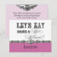 Des polices élégantes et amusantes annoncent le message "Mangeons, buvons et marions-nous !" sur un ensemble de faire-part de mariage fantaisiste et charmant. Dans une palette de couleurs rose chèvrefeuille, gris, noir et blanc, propre et nette, c'est le meilleur du vintage avec une touche moderne. Le recto comporte le texte et vos noms avec la date de votre mariage. Au verso, deux ornements d'imprimeur avec une esperluette de police calligraphiée élégante et le texte "Célébrez avec nous" dans des polices uniques et amusantes, ainsi que les informations relatives au faire-part de réception de mariage. Il existe une gamme complète de produits disponibles avec ce design et nous pouvons le réaliser dans la ou les combinaisons de couleurs de votre choix.