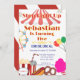 Venez nombreux ! Invitez vos invités au plus grand spectacle sur terre avec cette invitation moderne et fantaisiste sur le thème du carnaval. Le design présente un toit de tente coloré et une grande roue joyeuse, entourés de tous vos snacks préférés de la foire comme du pop-corn, un hot-dog et une boisson de carnaval. Cette invitation personnalisable est parfaite pour l'anniversaire d'un enfant et prépare le terrain pour une journée remplie de jeux, de friandises et de plaisir !