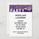 Invitations de soirée sur le thème de la crosse créatives à personnaliser facilement pour un joueur de crosse, un entraîneur ou une soirée senior d'équipe violette ou une célébration d'événement sportif.