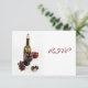 Invitation à une soirée de dîner au vin et au fromage avec un cadre élégant mais décontracté avec une bouteille de vin, un verre à vin, des figues et des raisins.