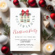 Vacances d'hiver à la maison invitation dans le style typographique moderne avec une petite maison dessinée à la main avec un ruban rouge. ++++++++++++ Personnalisez-le avec vos détails ! +++++++++ Convient pour les soirées d'hiver au foyer - nouvelle maison, nouvelle montagne cabine, chalet de campagne.
