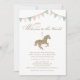 Cette invitation douce et chic indique le "accueil au monde" et comporte un cheval de carrousel de parties scintillantes de rose-or de faux avec les bannières roses et vertes, et un arrière - plan à pois.
