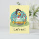 Un dindon de dessin animé est vu s'asseyant pour un dîner de Thanksgiving sur cette adorable invitation à dîner avec la date, l'heure et le lieu indiqués au dos